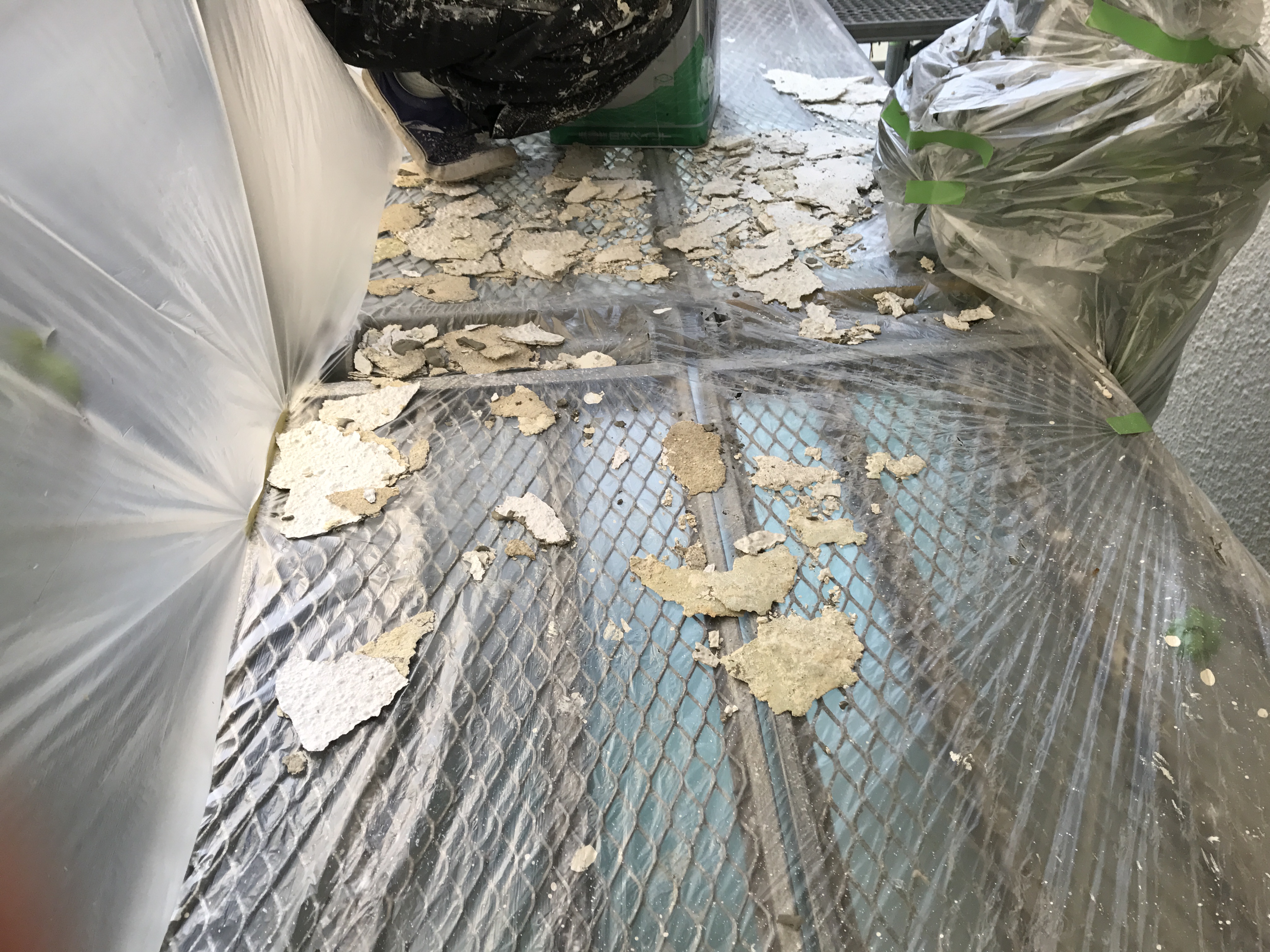 まず、剝がれる部分はすべて剥がします。こんなに破片が落ちています。