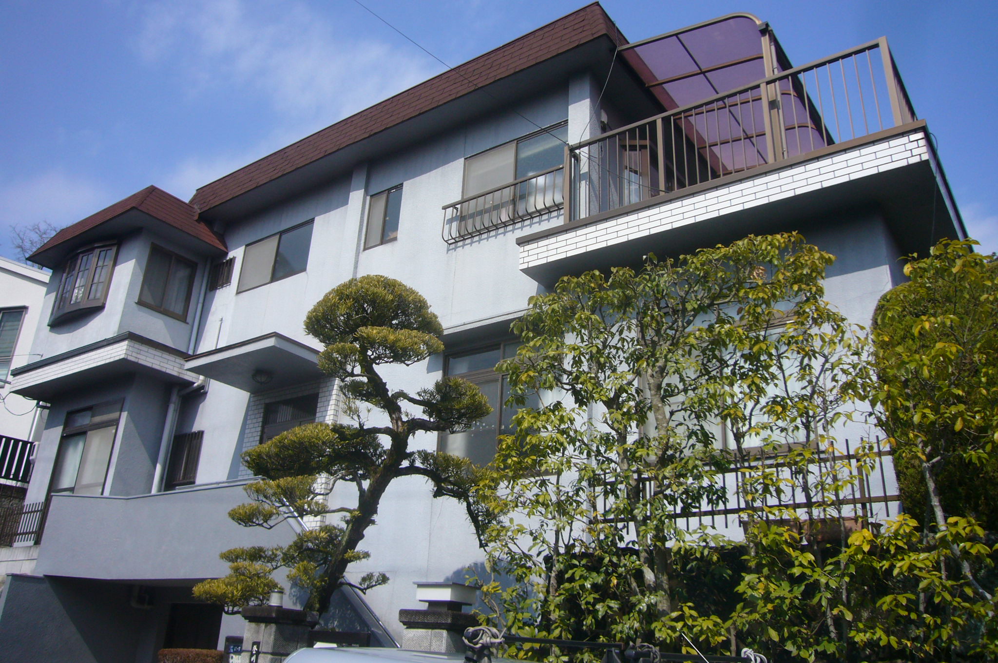 築30年でグレーの外壁でした。明るいアイボリーに変更を提案。