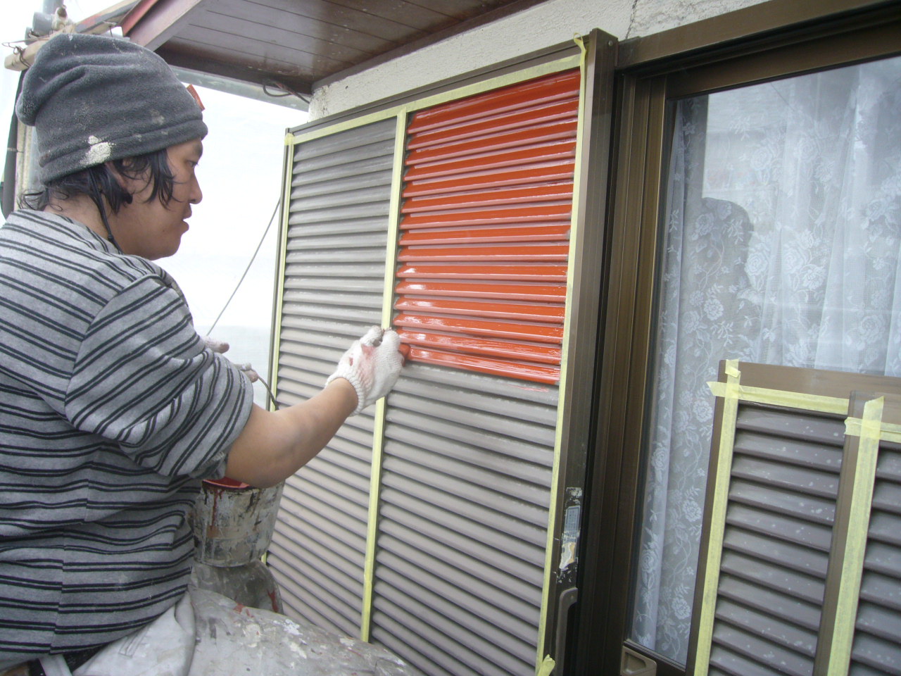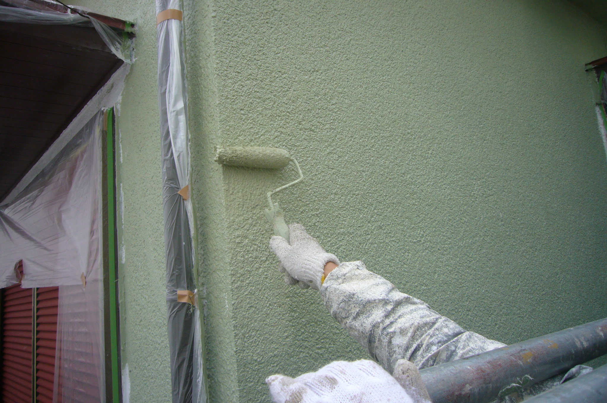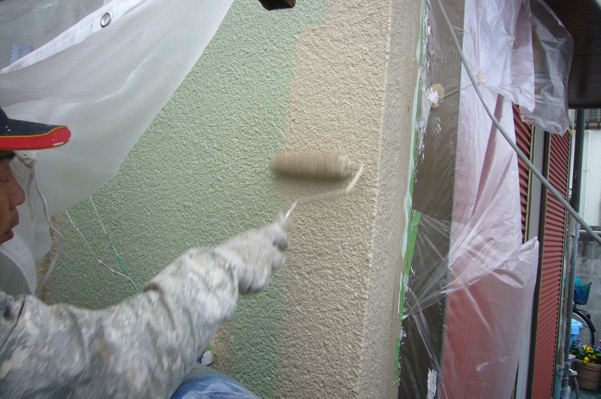 仕上げ塗りをしています。中塗りの色を替える事により塗り残しがないか一目でわかります。