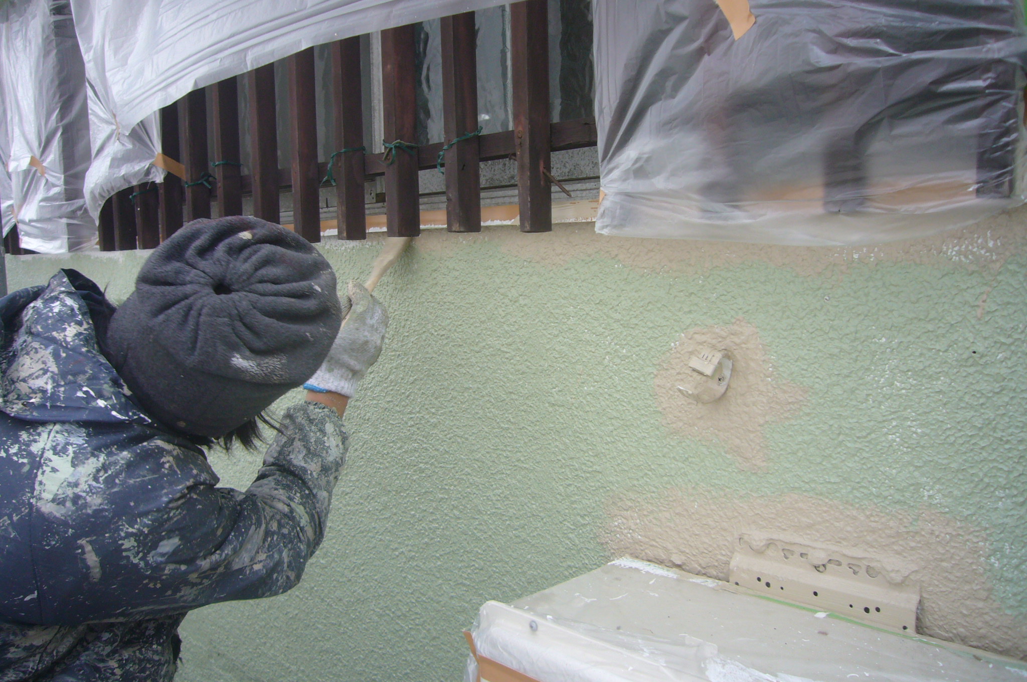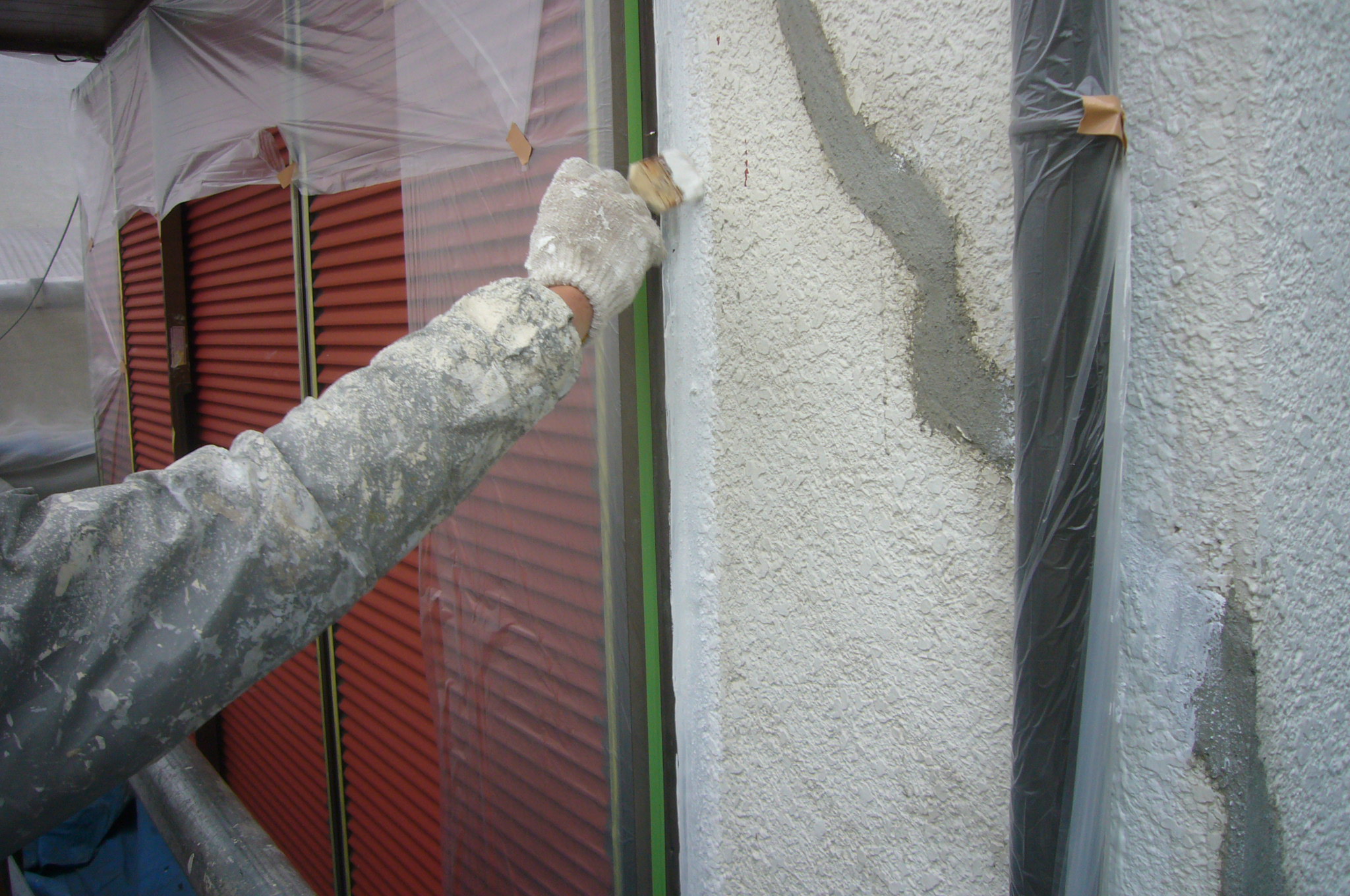 築35年で阪神淡路大震災の時の大きなクラックが6ヶ所有り、美観を損ねていました。クラックの跡を消すのが第一目的でしたので苦労しましたが、ほとんどわからなくなり満足してもらえてホッとしました。