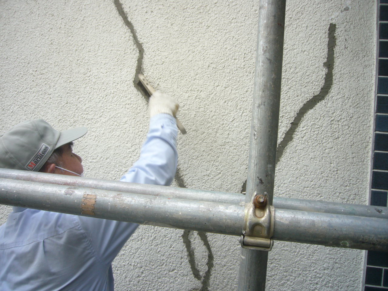 ヒビ割れ部分Vカットして樹脂モルタル充填しています。