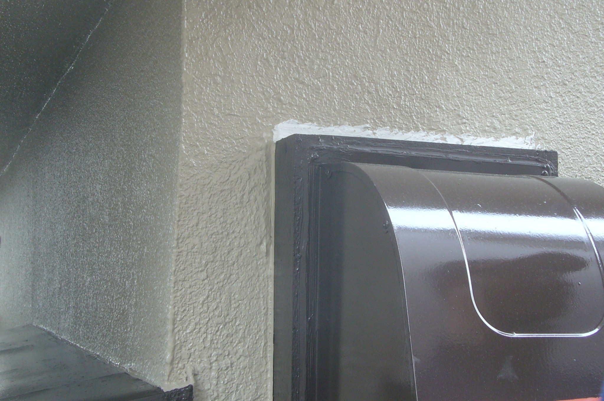 換気フード廻りのスキマもコーキングを入れました。これで雨漏りの心配もなしですね。