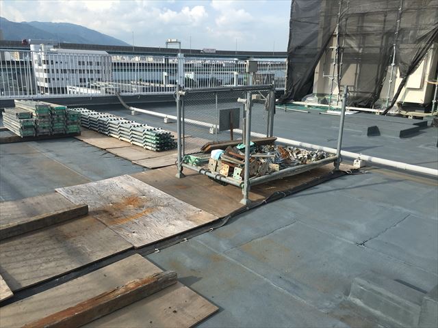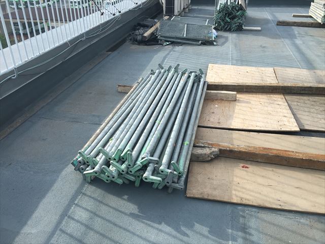 屋上はかなり大きいので足場の資材置き場には困りません。