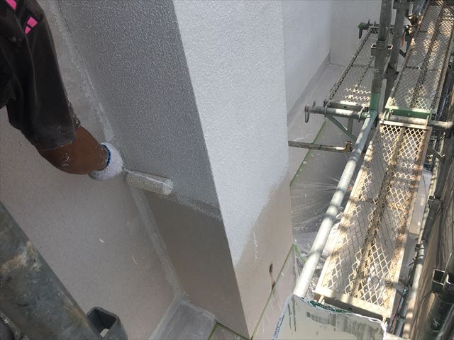 厚みのあるローラーで塗装していきます。