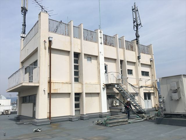 築30年以上の5階建てビルの屋上の塔屋部分の外壁を塗装してほしいとのことで