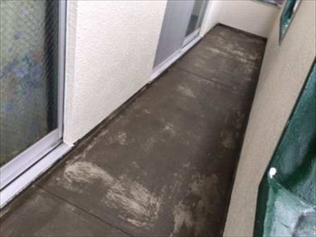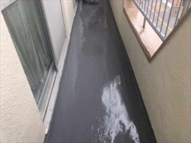 上記の写真が防水材を塗布後→乾かしている最中です。