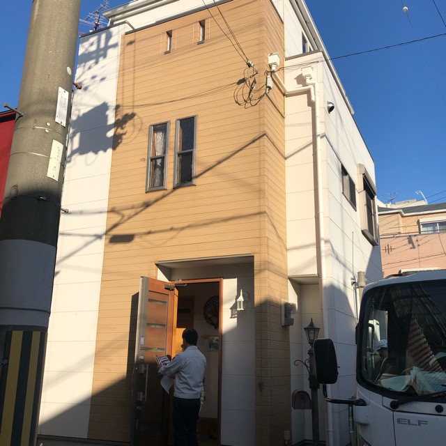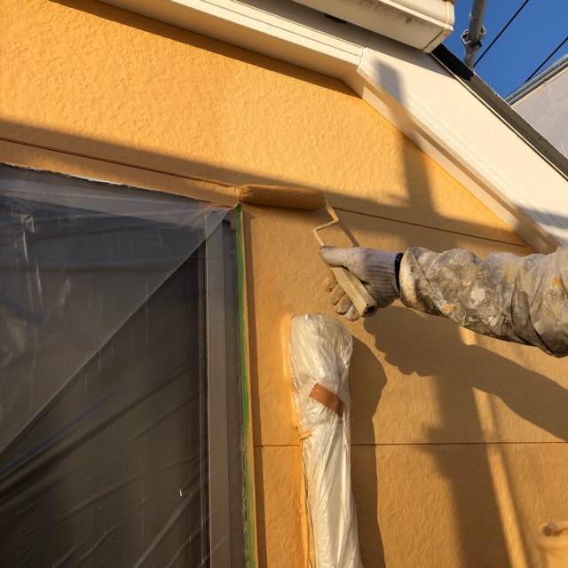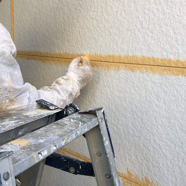 外壁を明るい色にしたいということで今回は黄色で塗りつぶすことに。元のサイディングが2種類使用されているので2色で塗り分けてもおしゃれに仕上がったと思います。屋根は奥様のご希望で白色で塗装。日反射率を考慮して色をお決めになられました。