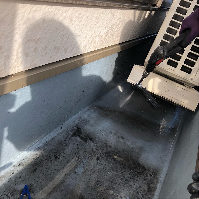 室外機の下もしっかり洗浄します