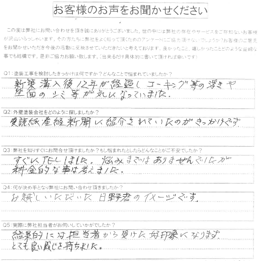 築12年が経ち外壁の目地の劣化が気になり始め、弊社にお問い合わせいただきました。