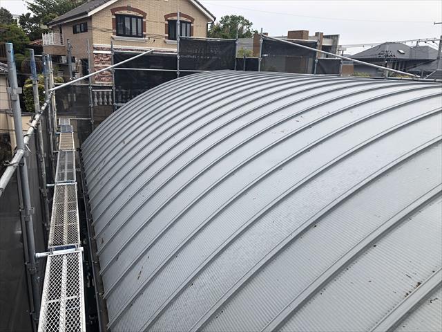 豊中市にある半円形の金属屋根とサイディング外壁を塗り替えリフォーム