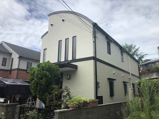 外壁には日本ペイントの「オーデフレッシュSi-Ⅲ」を使用し、下塗りには日本ペイントの「パーフェクトサーフ」という窯業系サイディングの塗り替え用下塗り材を使用しました。屋根にはシーラーレス塗料を使用したため工期短縮、費用削減が叶いました。