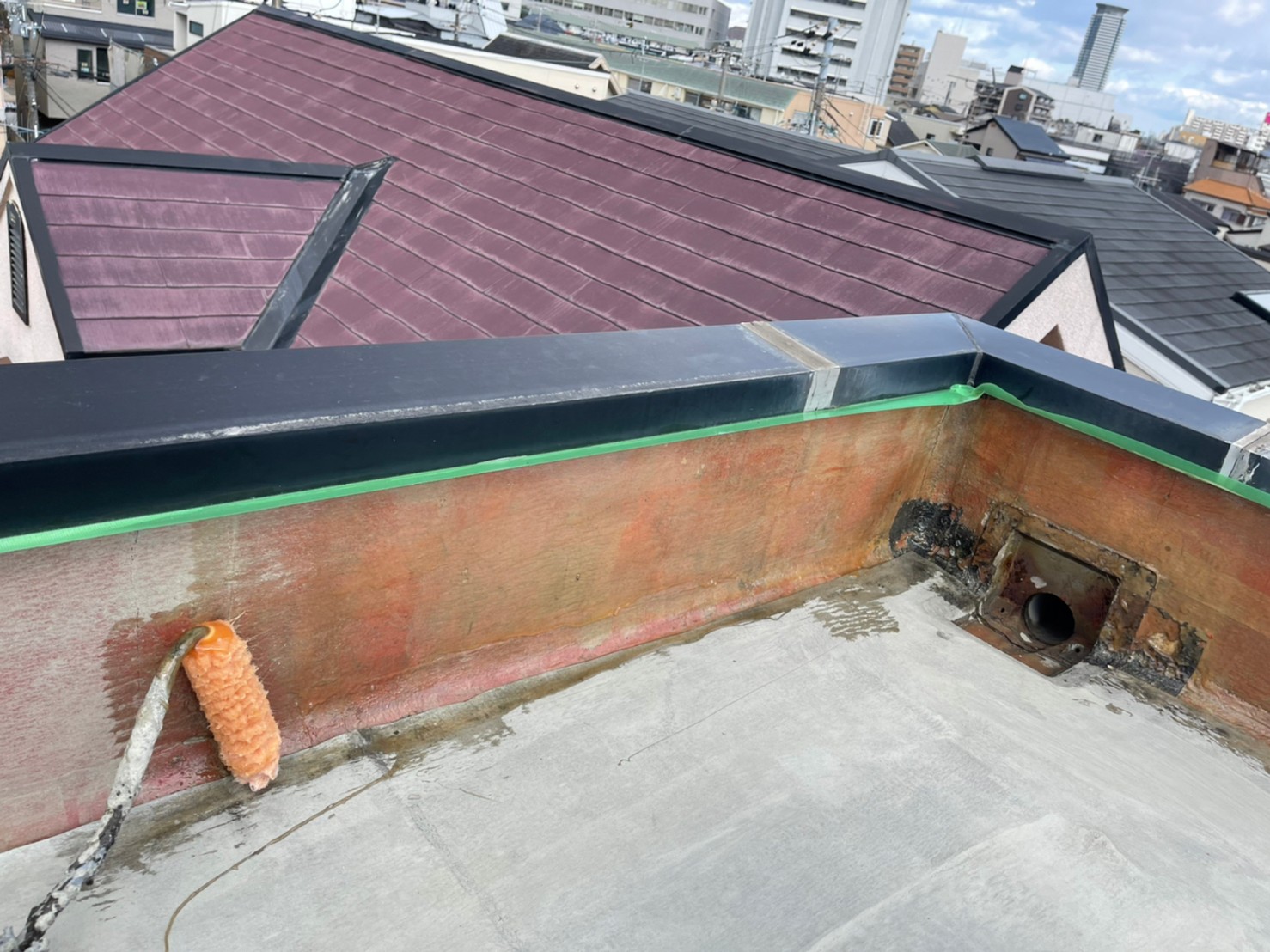 お客様にきちんと説明したうえで、今回は塔屋の屋上のみの防水工事を行うことになりました。