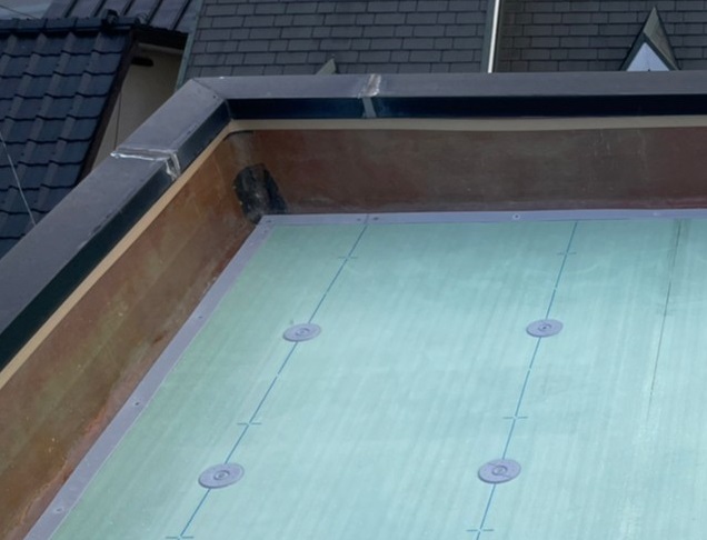 塔屋屋上にて塩ビシート防水機械的固定工法を行いました