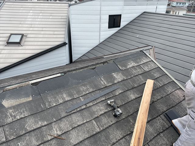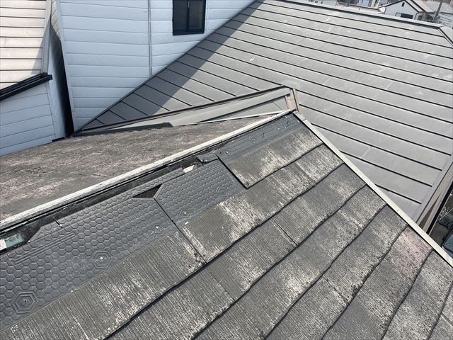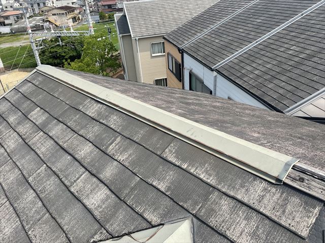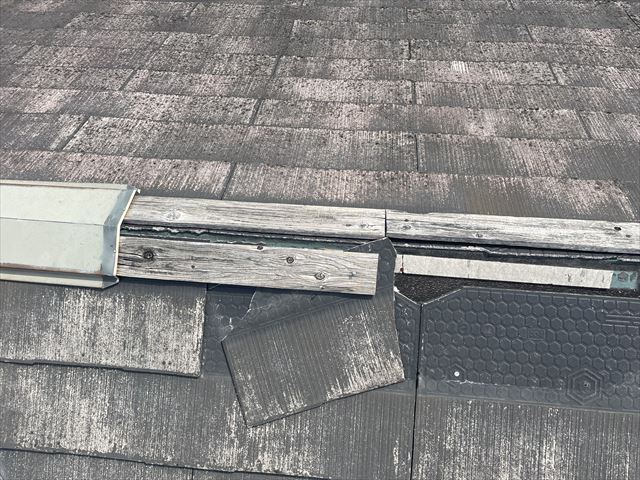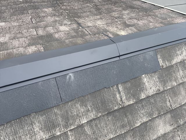 屋根の状態を点検したところ、棟板金部分が剥がれているのがわかります。