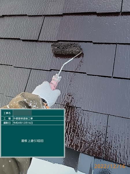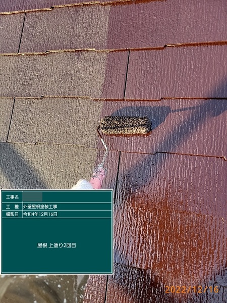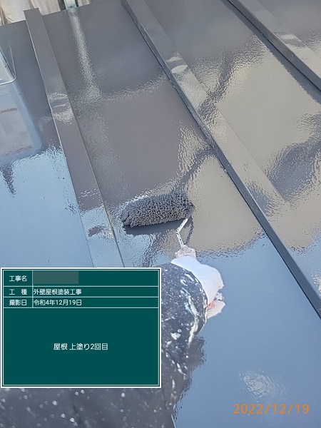 上塗り2回目です。こちらでトタン屋根塗装の施工は終了になります。