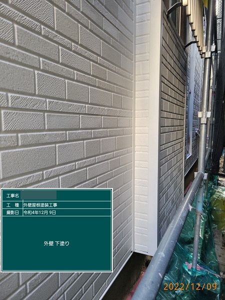 下塗り完成です。下塗り材は、日本ペイントのパーフェクトプライマーを使用しております。
