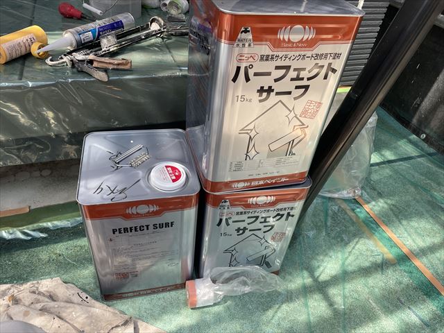 こちらが使用した下塗り材になります。日本ペイントパーフェクトサーフになります。