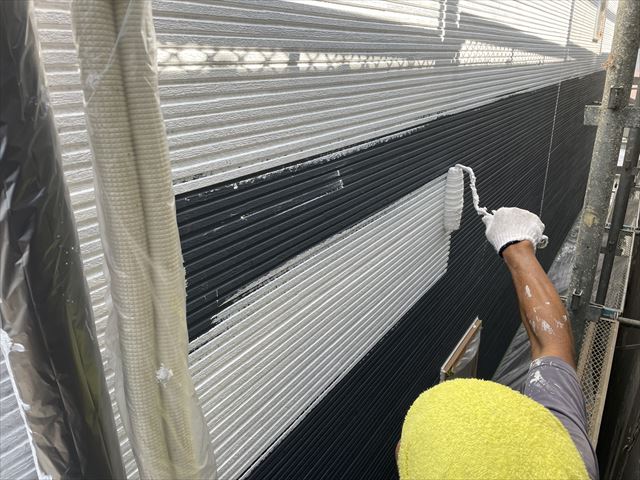外壁塗装の2回目の様子になります。綺麗な艶が出ています。これでしばらくは外壁のトラブルはないと安心できますね。
