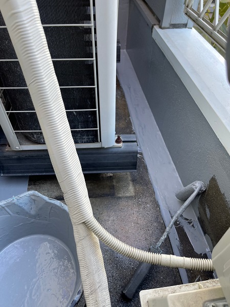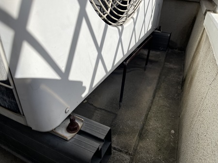 室外機の一つは、下に架台を置かせていただきました。この架台で室外機を下から支えてそこを塗装していきます。