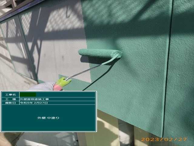 こちらは中塗りの様子になります。中塗りと上塗りの塗料は、日本ペイントのパーフェクトトップを使用しております。