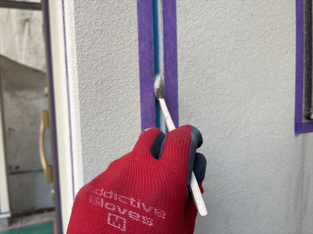 次にプライマーを塗っていきます。コーキングがしっかり密着する為です。