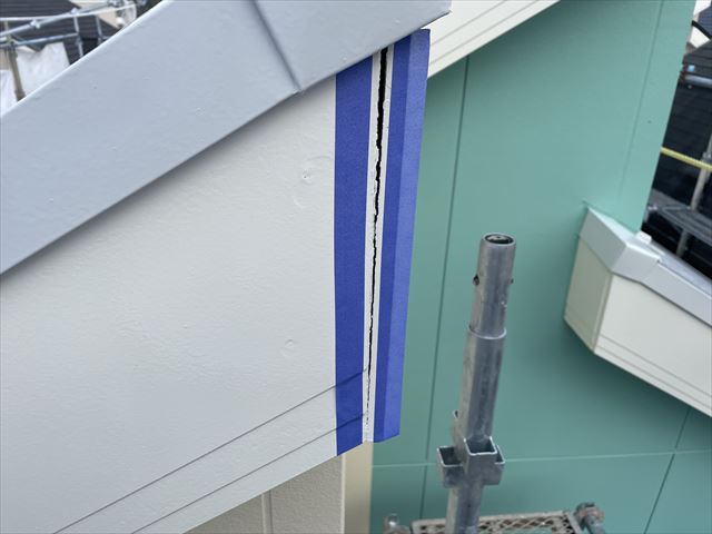 外壁が汚れないように養生テープを貼っていきます。