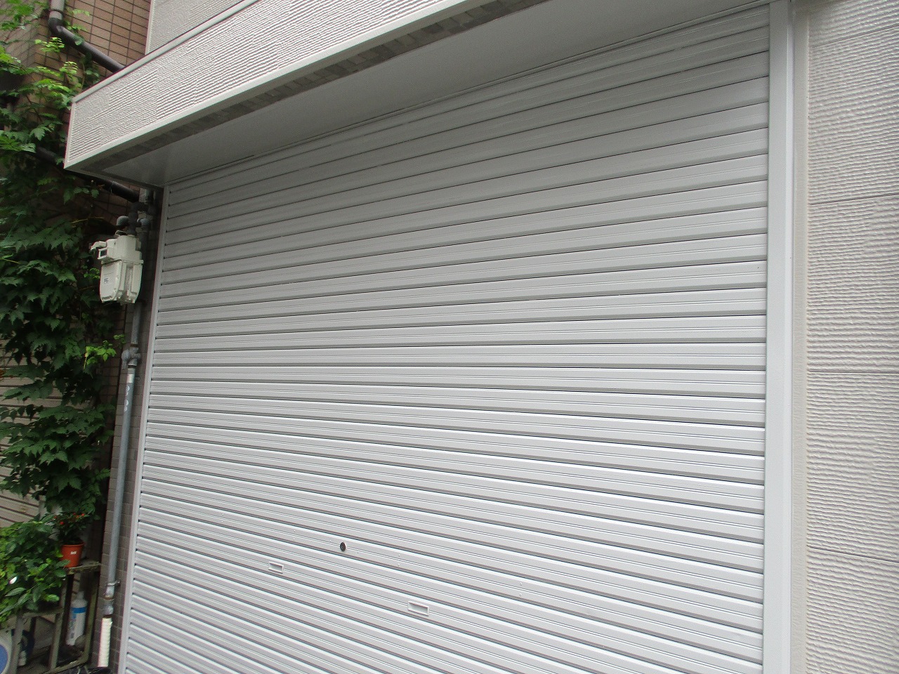 ガレージのシャッターです。こちらはケレン作業を行ってからさび止めを塗り、日本ペイントのファインパーフェクトトップを塗装して仕上げています。