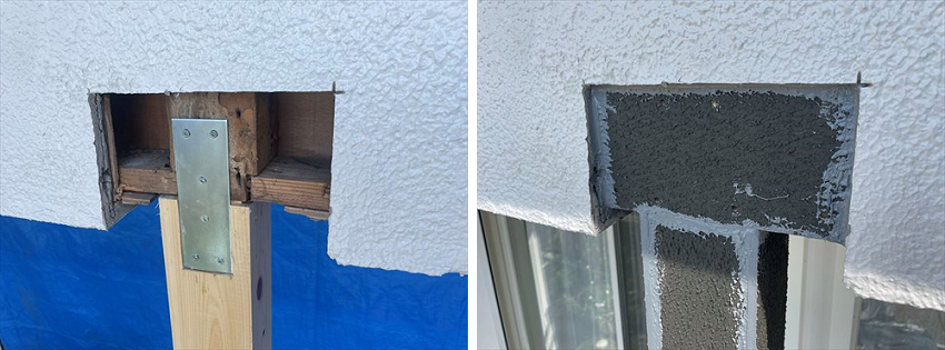 柱を新しくした後に、ラスカットを張りもモルタル下地をつくっていきます。
