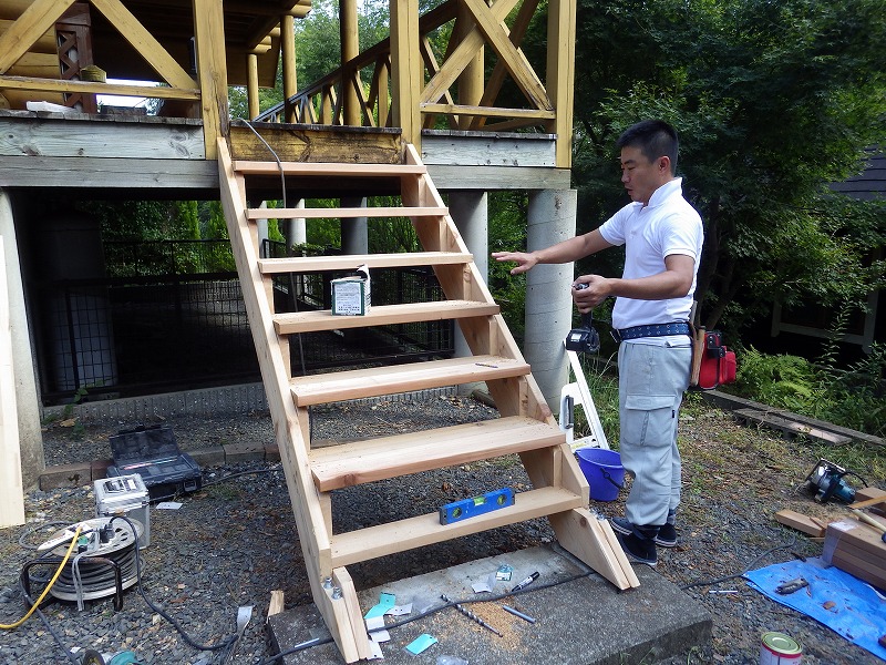 雨がかかる屋外階段は登れないほど腐食していましたので、作り替えました。