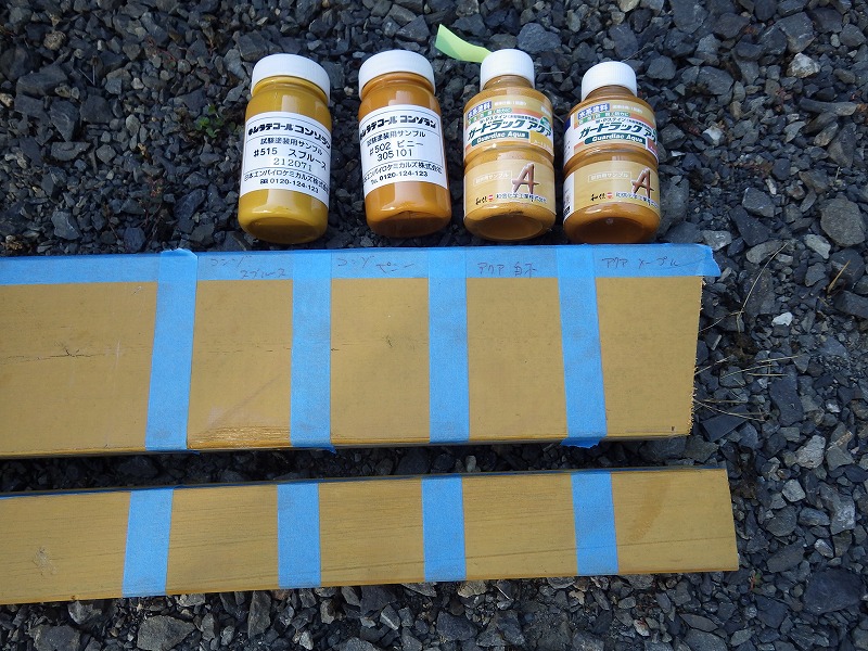 木部塗料のサンプル塗装。
