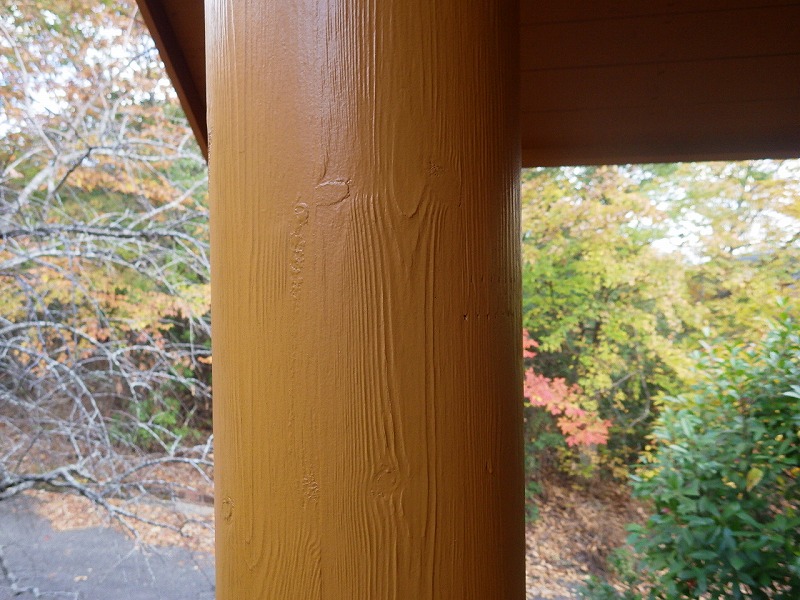 日当たりと雨のあたる部分は旧塗膜の剥離があり、少し遅いくらいの改修時期でした。