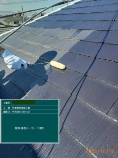 こちらは下塗り作業です。浸透シーラーを使用しております。