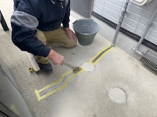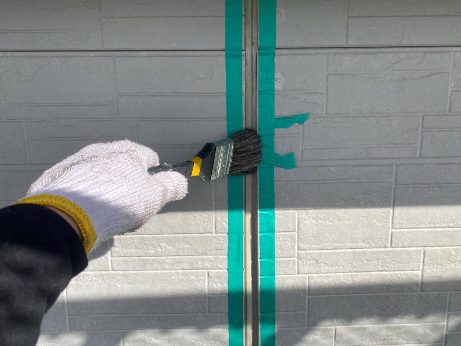 プライマーを塗布した後にコーキングを充填していきます。