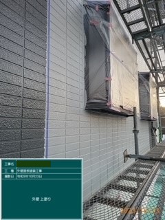上塗り完了です。外壁塗装も日本ペイントのパーフェクトトップを使用しております