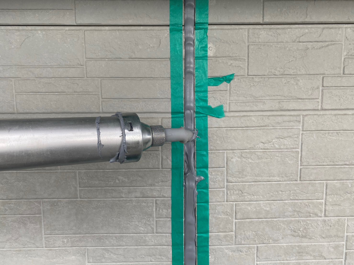 既存の古くなったコーキングを専用のカッターで剥がしていきます。この剥がす作業の際にコーキングが綺麗に剥がれていないと、新しくコーキングを充填してもうまく密着しないので綺麗に丁寧に剥がしていきます。