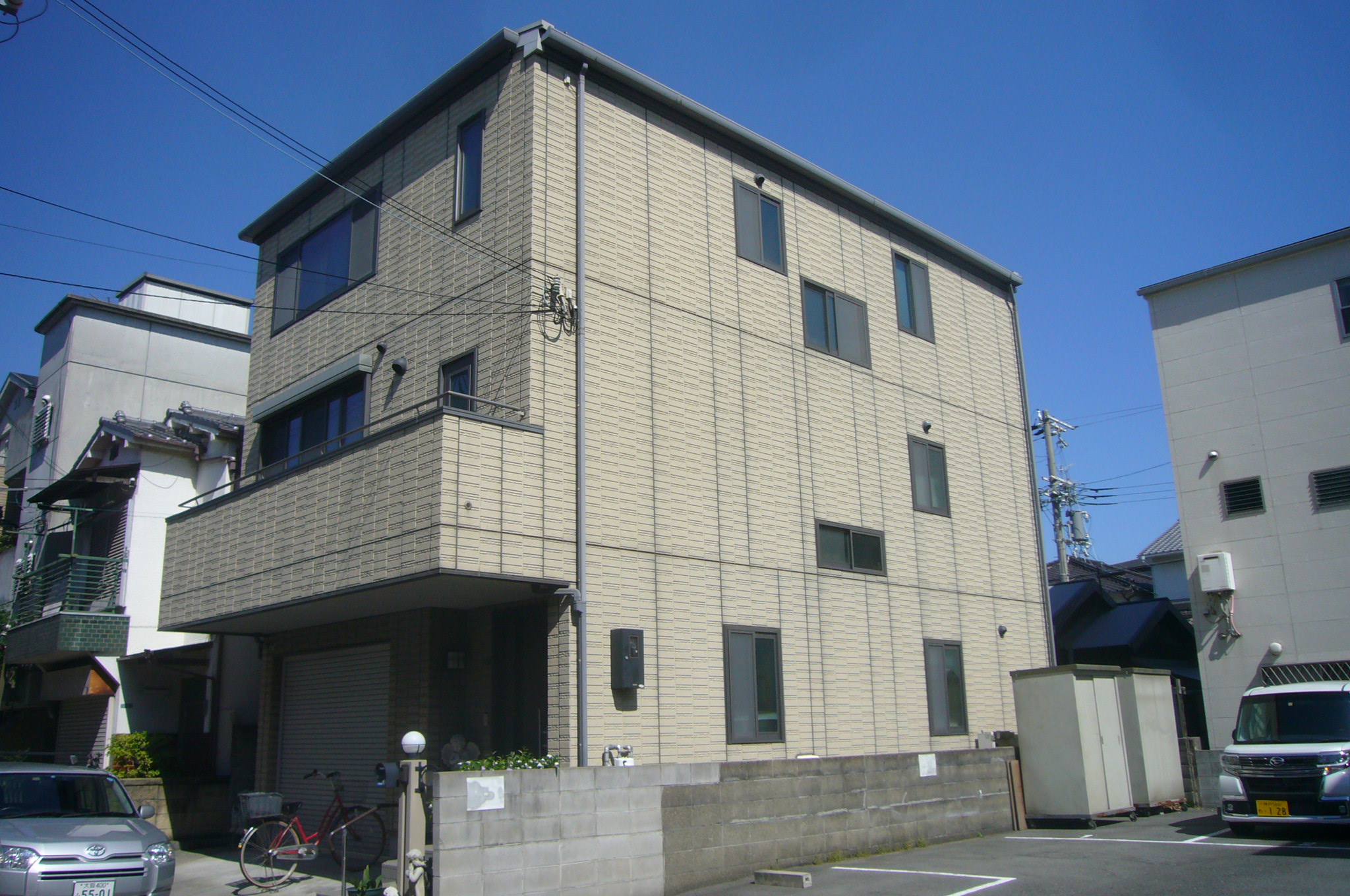 大阪市此花区にて外壁塗装工事パーフェクトトップ塗料おしゃれに帯を巻いて塗装