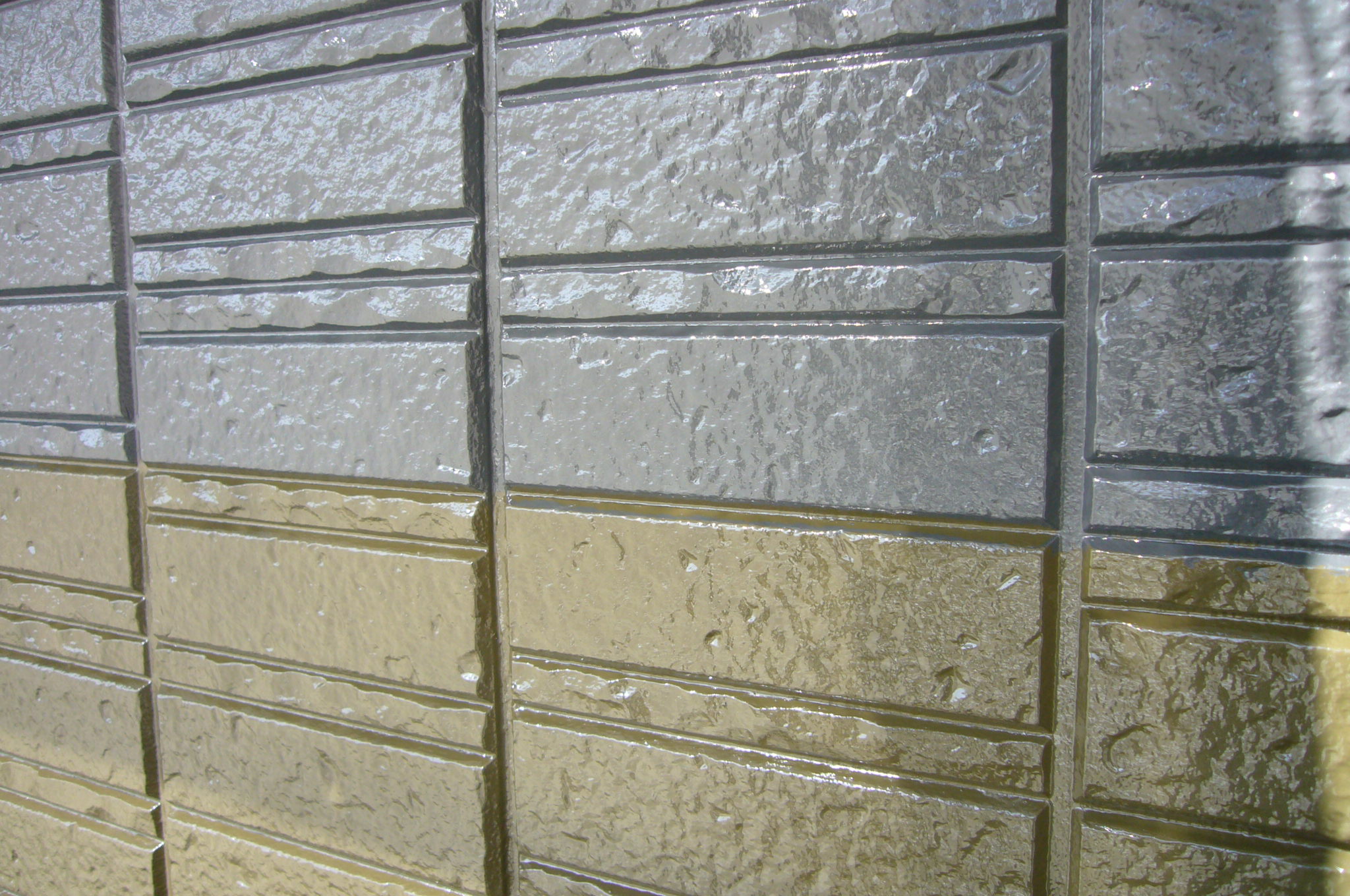 最初に色を決めるときにiPadを使ってカラーシミレーションをしました。 何通りかシミレーションで選び、その中から気に入った一つを選んで頂きました。 その選ばれた色と同じ、実際の壁に塗ってある見本をお持ちしました。 よりお客様の理想の外壁塗装に近づくように提案できたのでお客様にも喜んで頂けました。