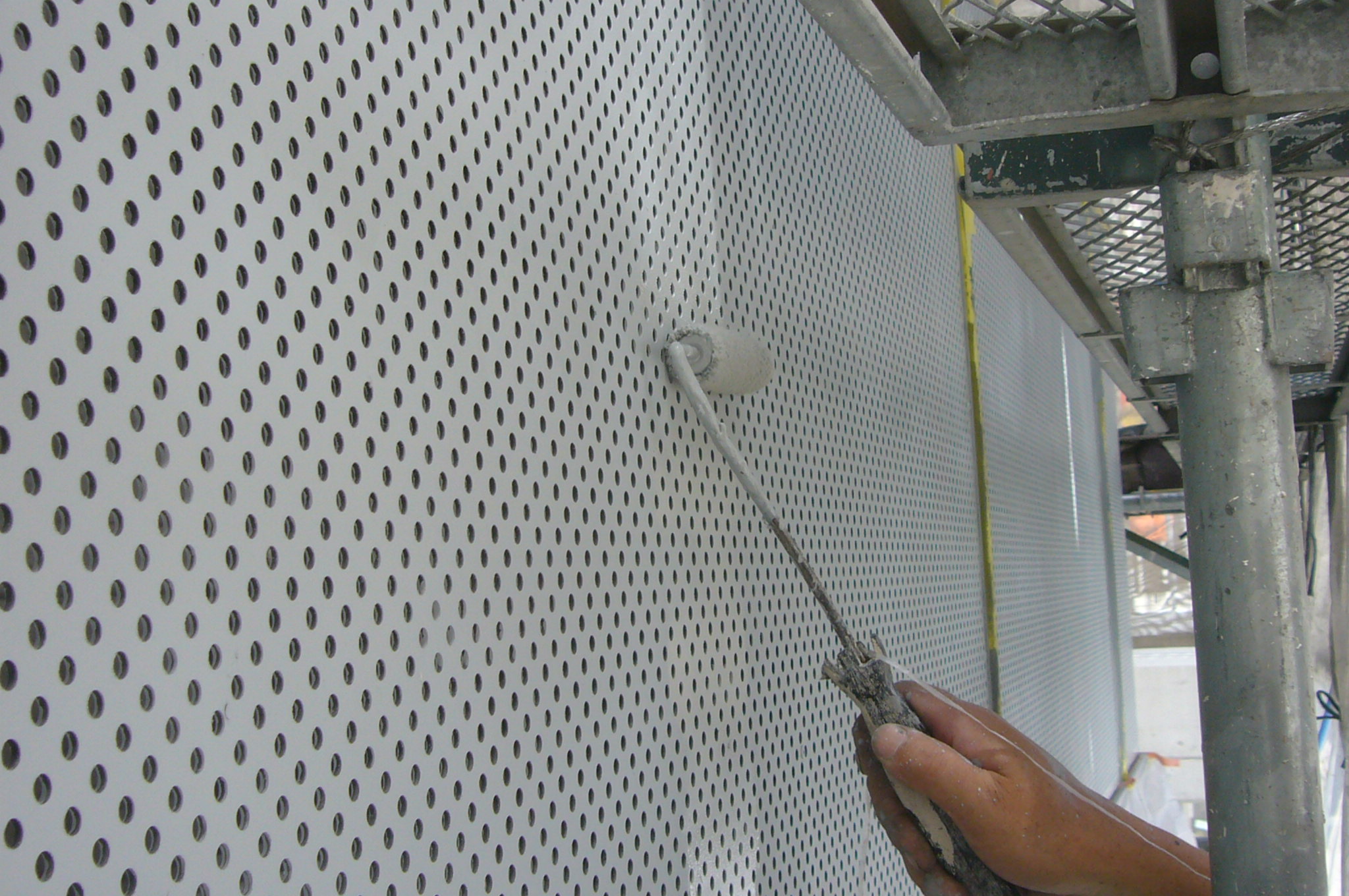 ベランダを囲っているパンチといわれる鉄部も丁寧に塗っていきます。