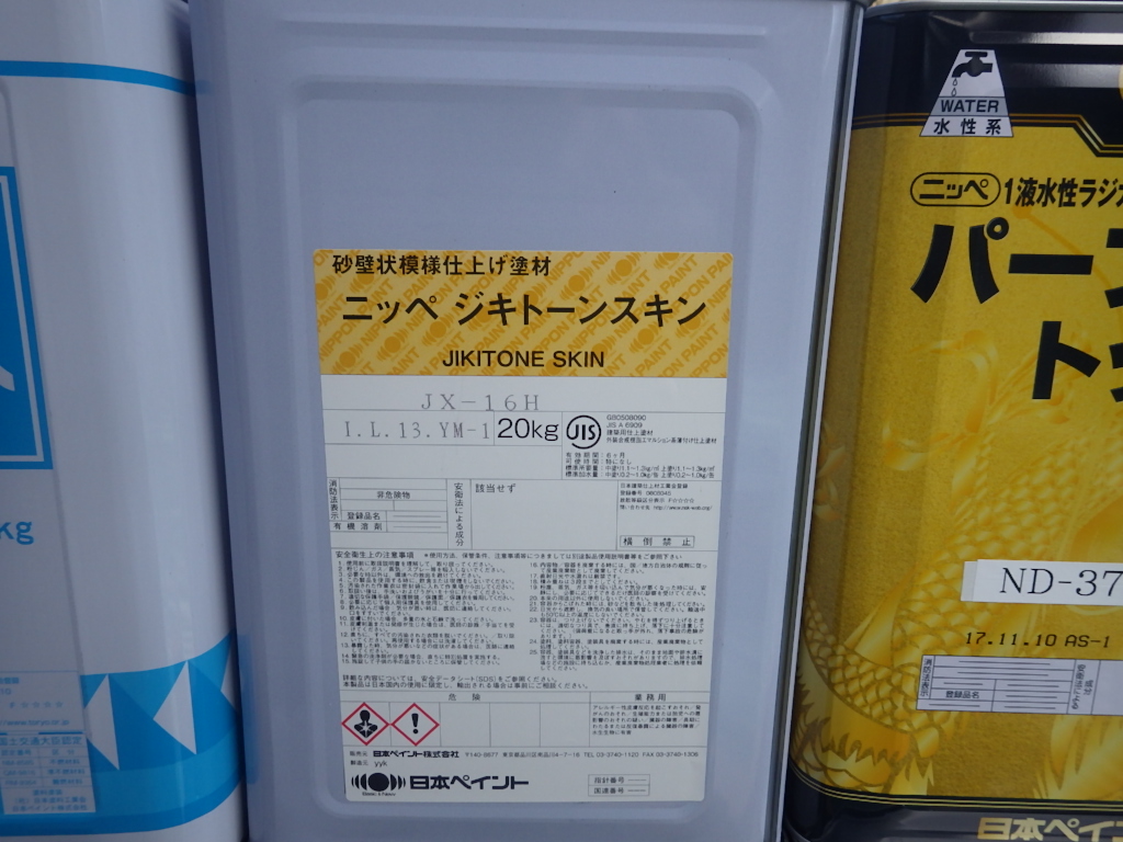 ジキトーンスキンと言う自然石を含んだ塗料で吹付塗装で施工します。