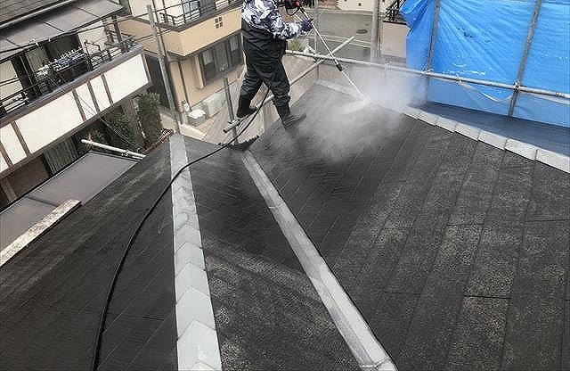 今回は破損や反りなども見受けられなかった為高圧洗浄のみ行います。