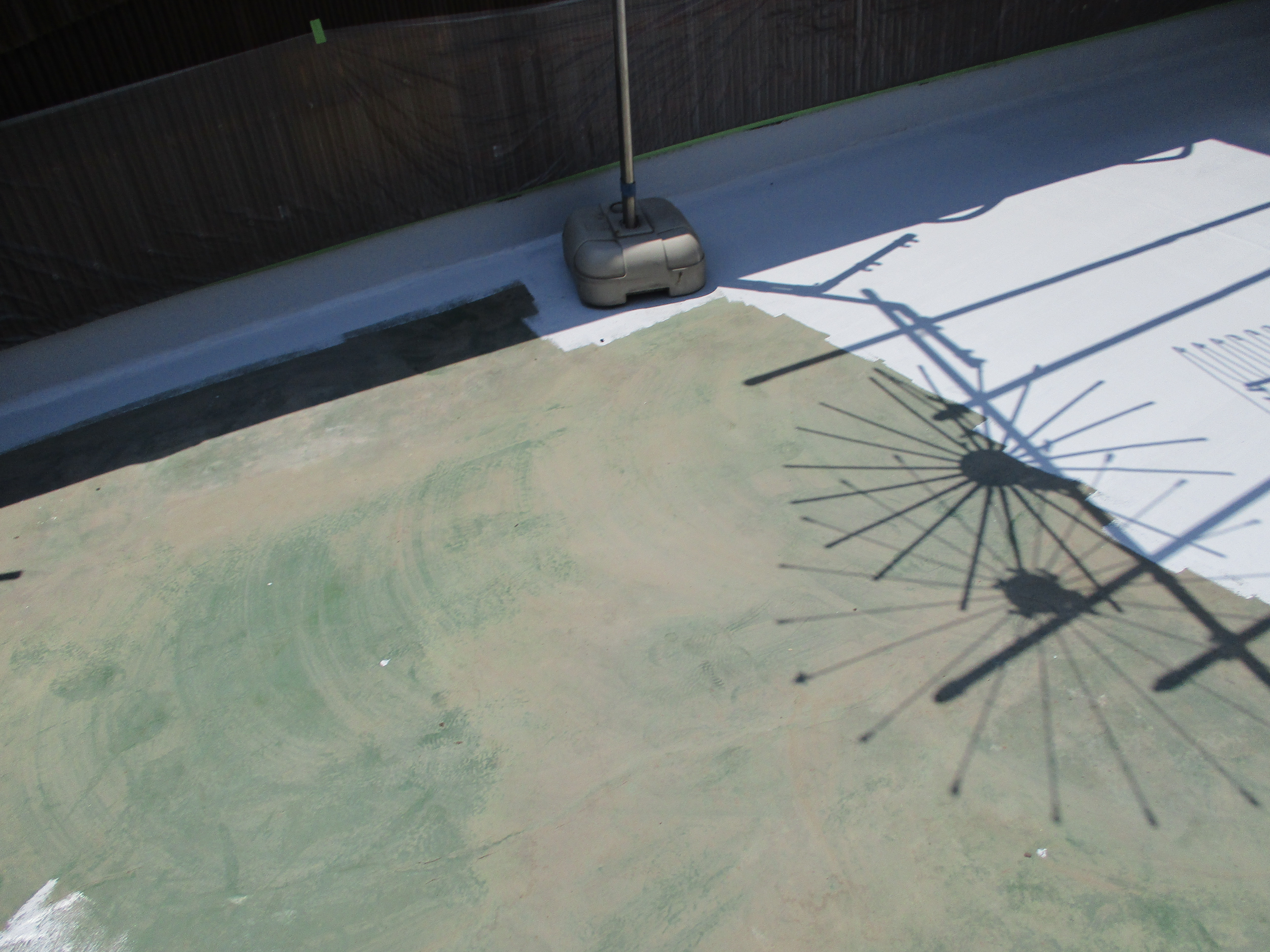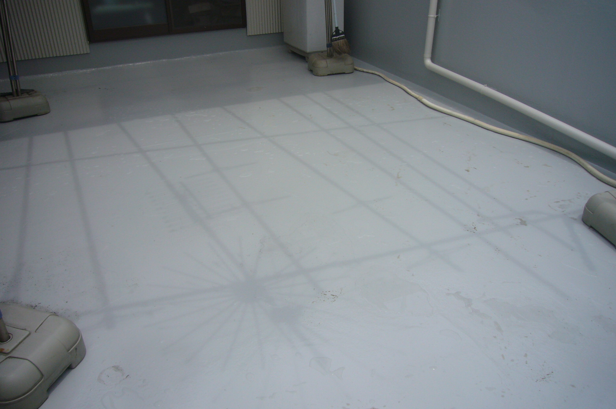 ベランダの防水が完了しました。今回はFRP防水で施行したので