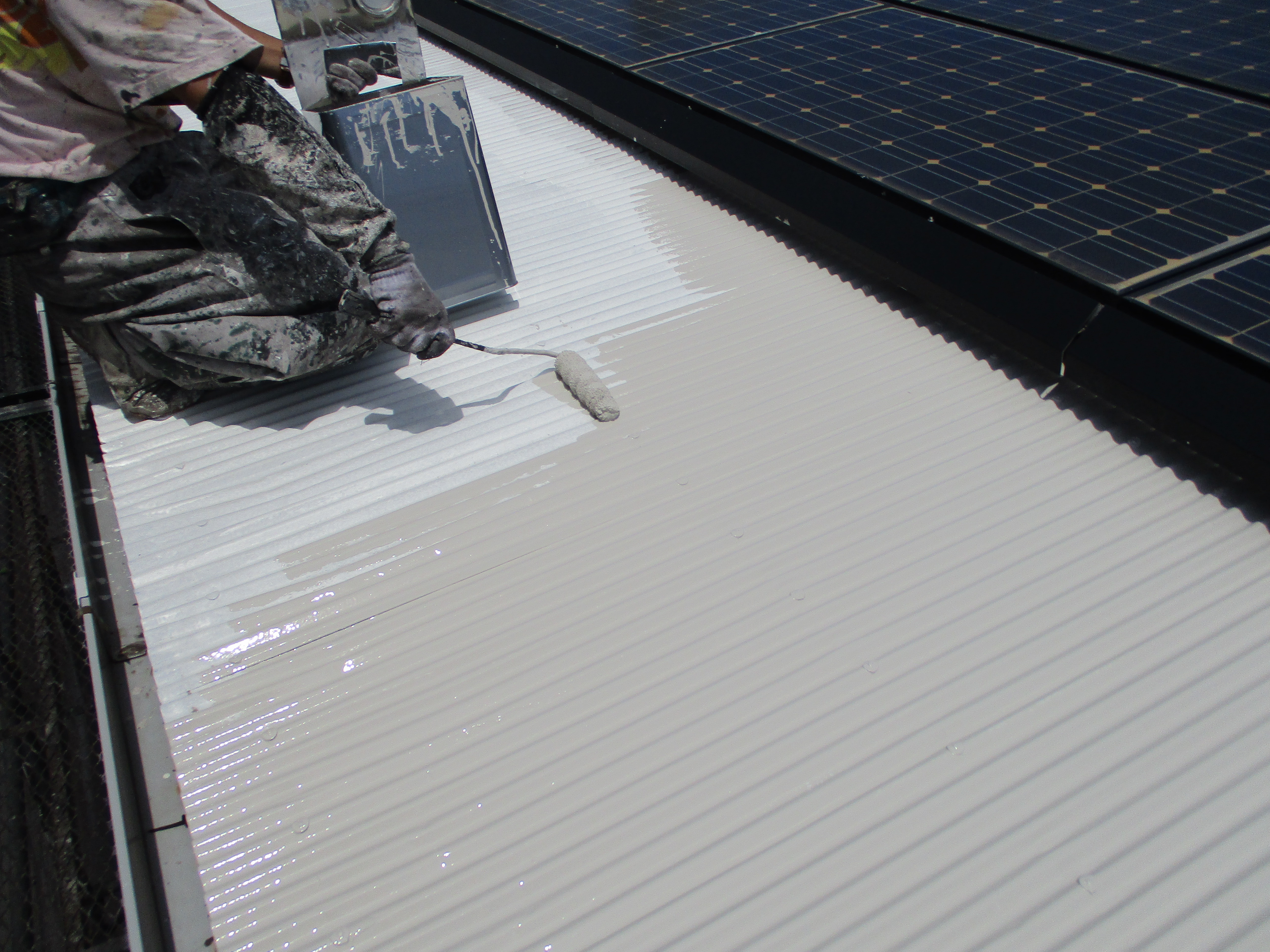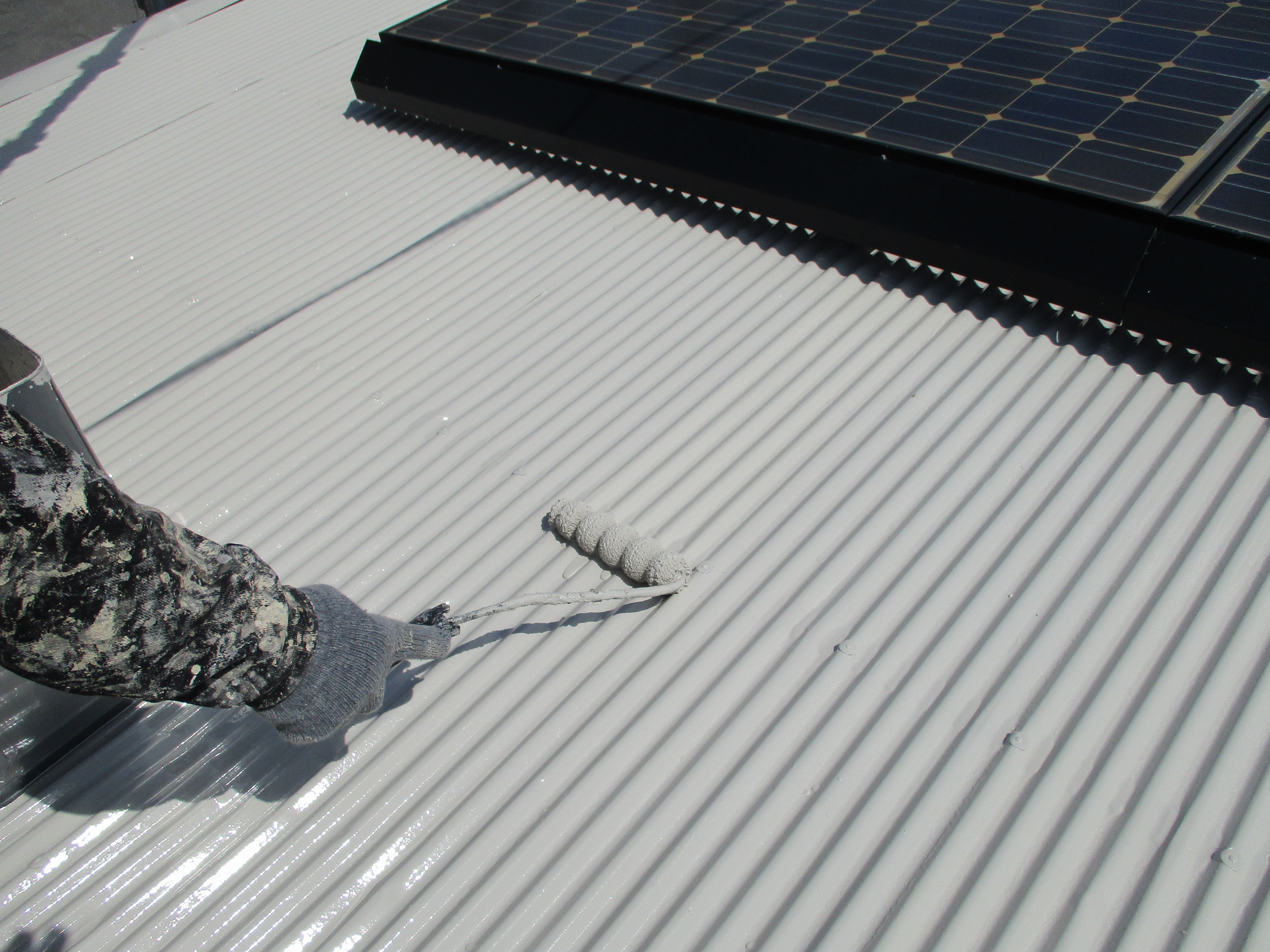 屋根が仕上がりました。材料はフッソ遮熱塗料です。