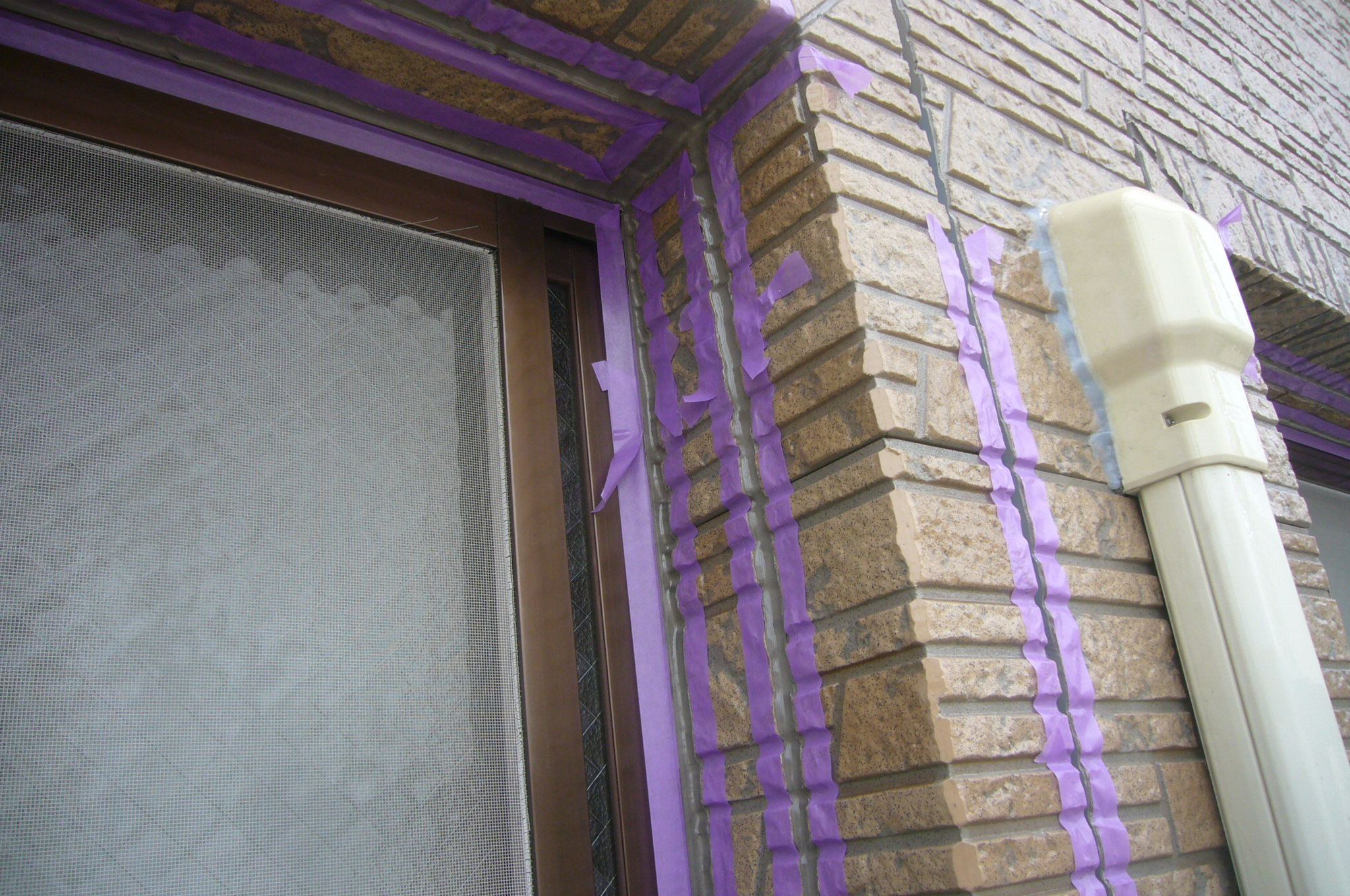 外壁のクリヤー塗装が終わると次は目地のシール打ち替えに