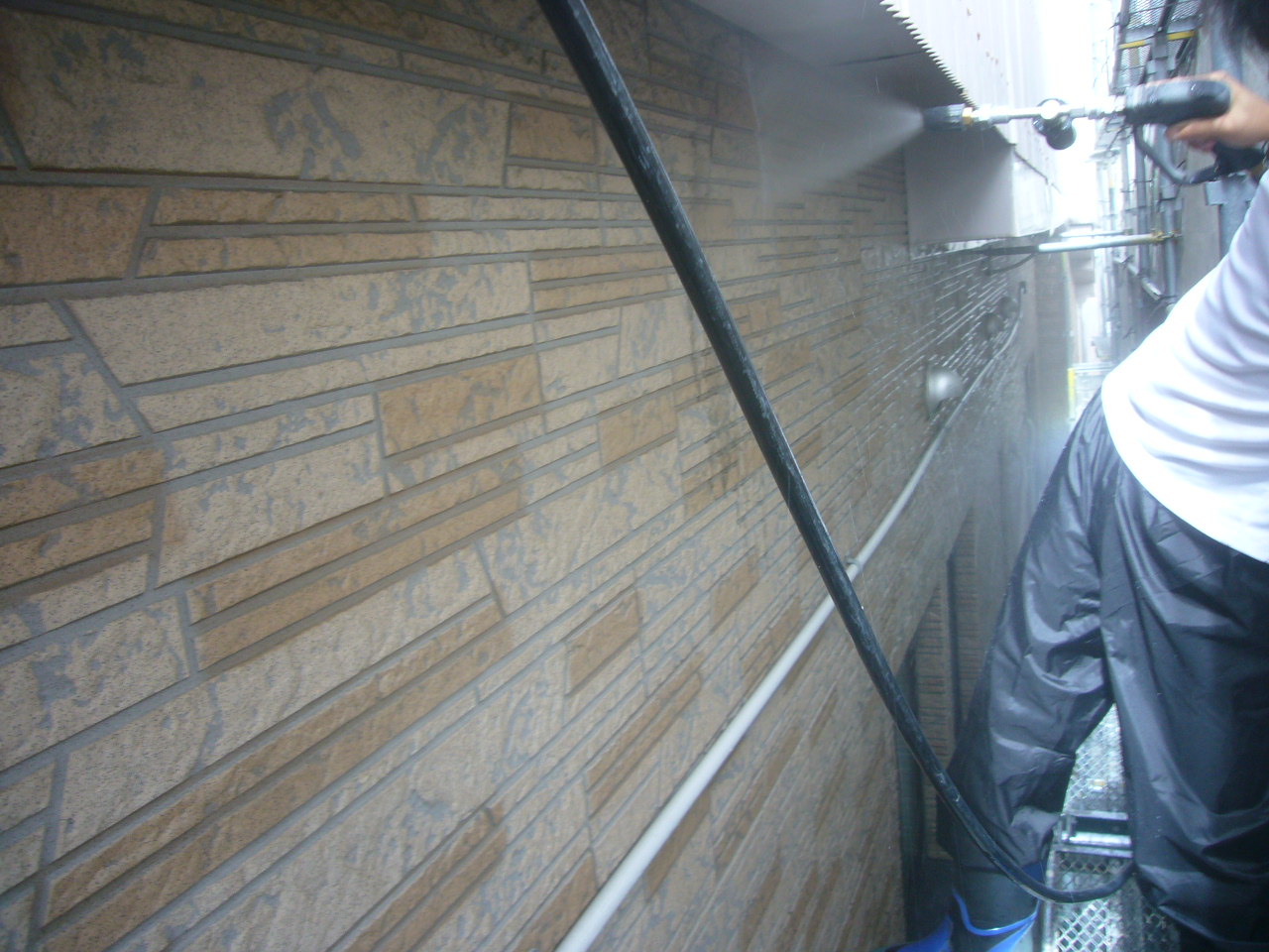 ローラーで塗ると液ダレしてしまうのでエアレスという機械で
