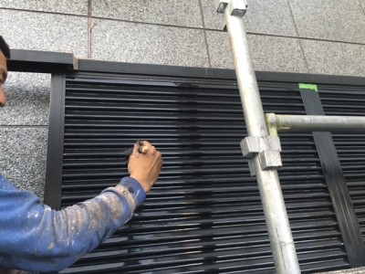高圧洗浄後は先に鉄部に錆止めを塗装します。錆止めを塗装しないとペンキの耐用年数にかなりの違いが出てきます。