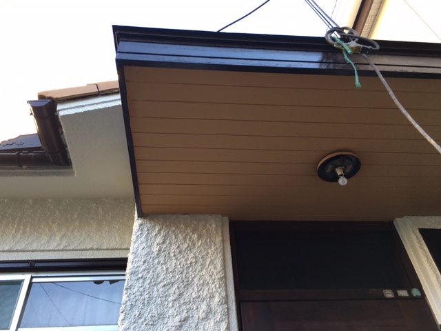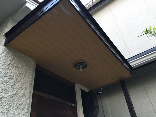 軒うらの塗装です。軒うらも雨戸同様に下地が捲れていたので補修を行い、ペンキで仕上げていきます。写真は塗装1回目です。