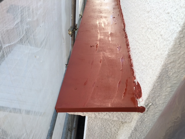 ウレタン防水材を流し、トップコートを塗装しました。塗装前は立ち上がりが全くなかったので今回の工事を機会に立ち上がりも一緒に作りました。