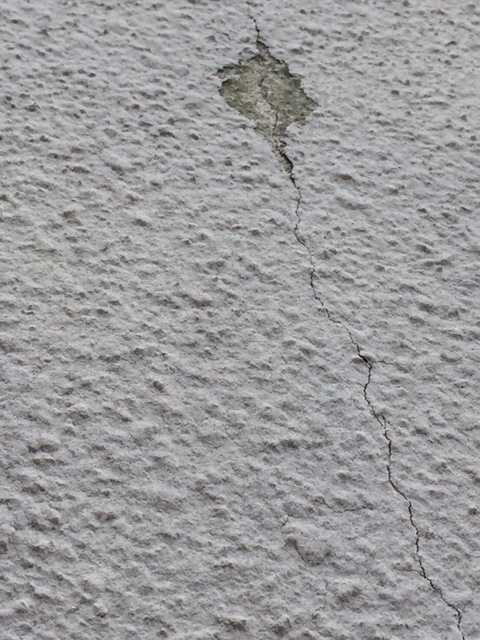 工事前の現場調査の内容です。18年前にセラミックの吹き付け塗装を施工しましたが、クラックが所々目立っています。