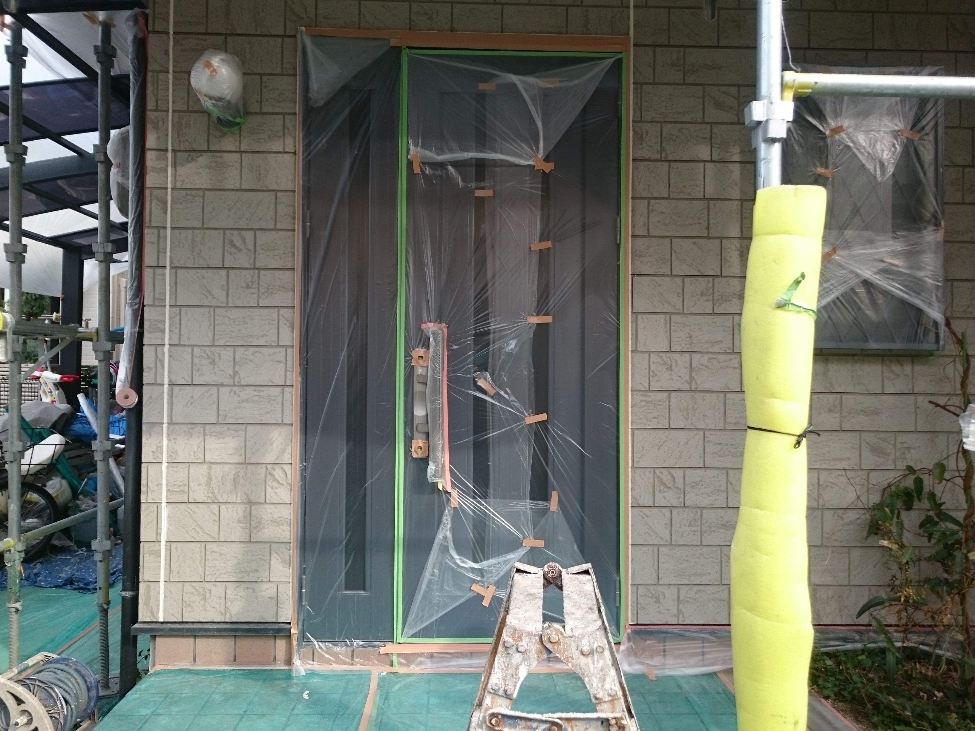 ドアもしっかり養生しています。飛散したペンキはどこにつくかわかりません。