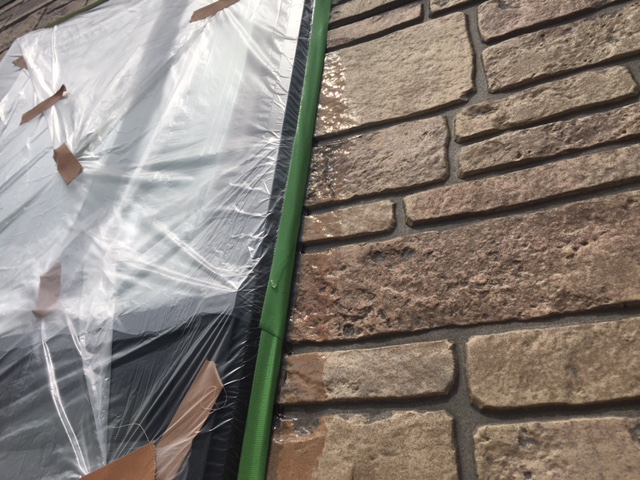 サイディングの塗装工事に欠かせないのがシーリング工事。今回はサイディングにはクリヤーを塗装したのでシーリング工事は塗装後になります。先にシーリング工事をしてしまうとシーリングがすぐにひび割れたりなどの異常があったりもしますので皆様も気をつけましょう。そしてサイディングのシーリング工事は既存のシーリングは撤去するのが基本です。打ち替えるのが基本ということも覚えておきましょう。写真は既存のシーリングは撤去した後に養生をした所です。